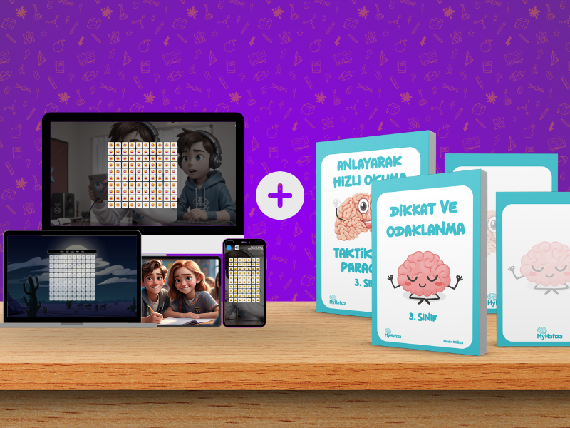 İlkokul 3.sınıf öğrencilerimize özel olarak hazırladığımız "Anlayarak Hızlı Okuma”, “Dikkat ve Odaklanma” kitapları ve "Anlayarak Hızlı Okuma” dijital platformu ile hizmet vermekteyiz.